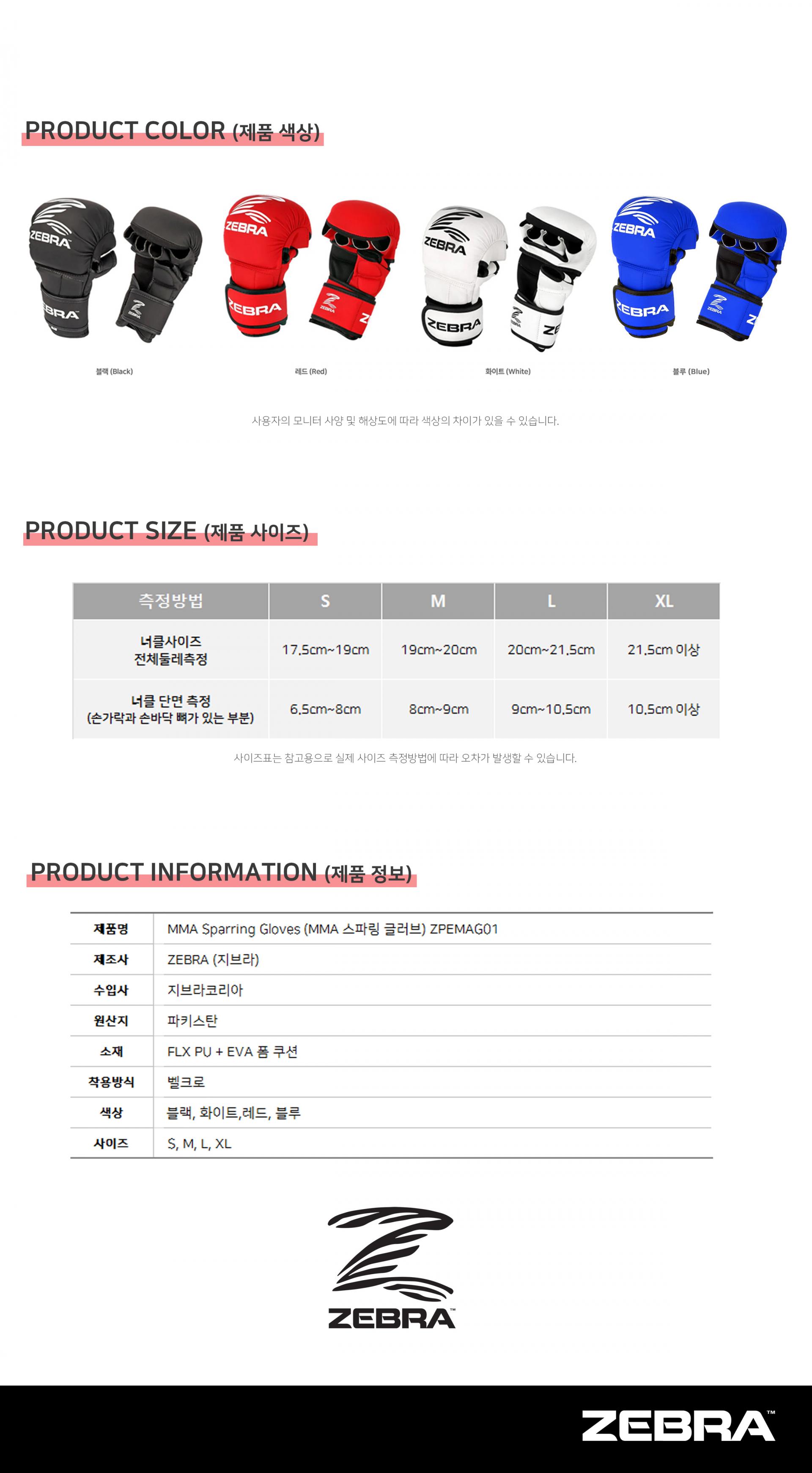 지브라 MMA 글러브 - [ZPEMAG01] ZEBRA MMA Sparring Gloves black /권투 킥복싱 무에타이 MMA 종합격투기