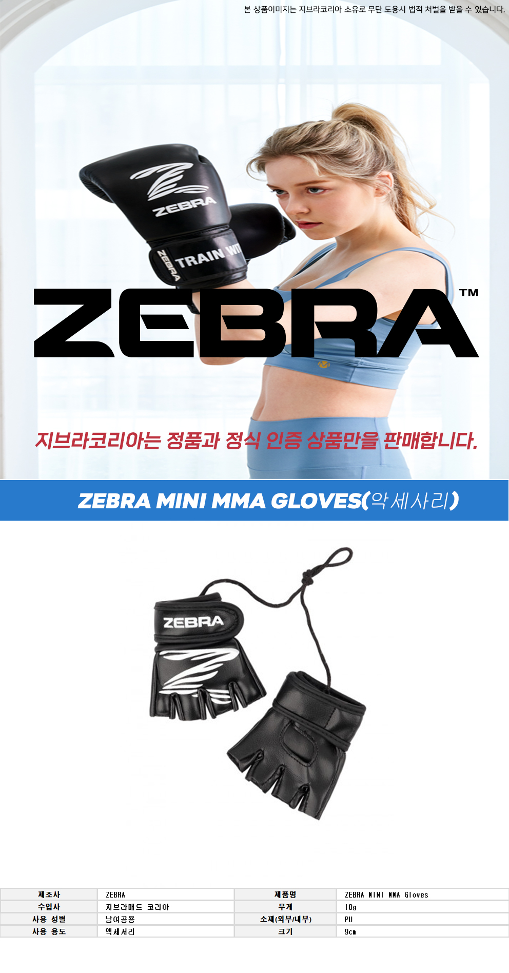 9cm 크기의 지브라 미니 MMA 글러브 악세사리입니다