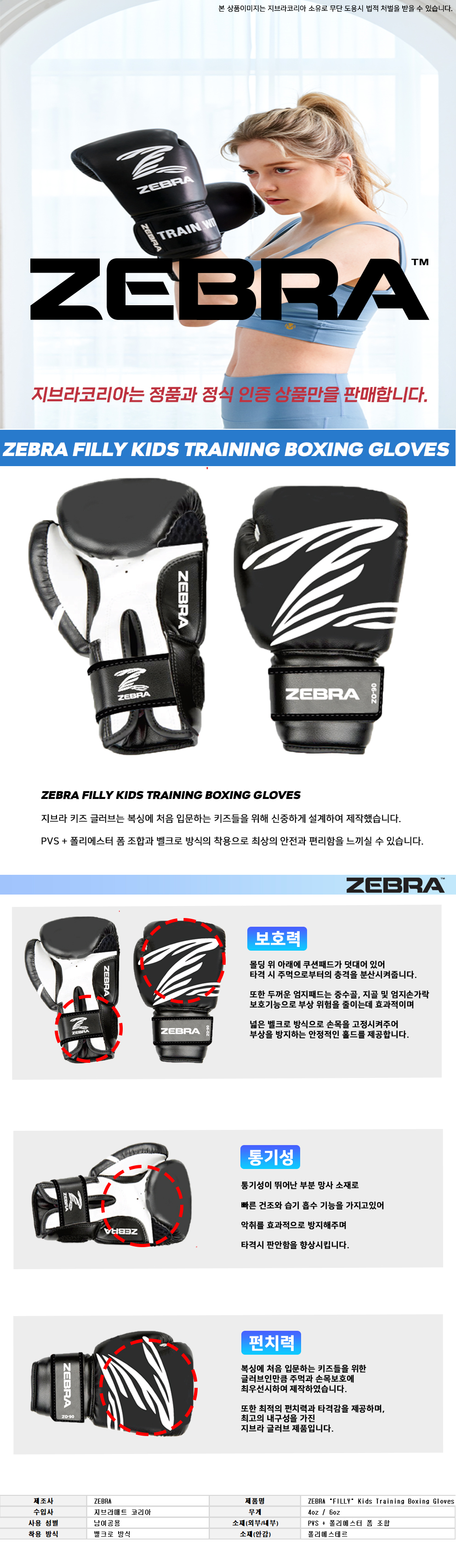 지브라 복싱 글러브 - [ZFTKG01] ZEBRA FILLY Kids Training Boxing Gloves /권투 킥복싱 무에타이 MMA 종합격투기