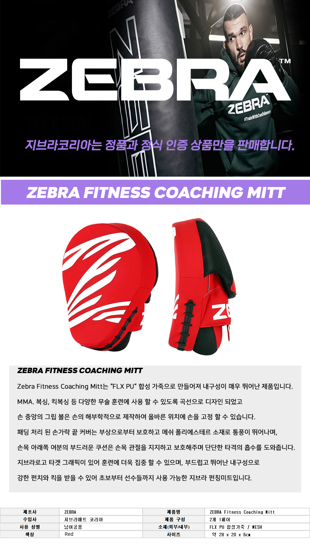 지브라 피트니스 코칭 미트 - [ZFTCM01] ZEBRA FITNESS Coaching Mitt Red /권투 킥복싱 무에타이 MMA 종합격투기
