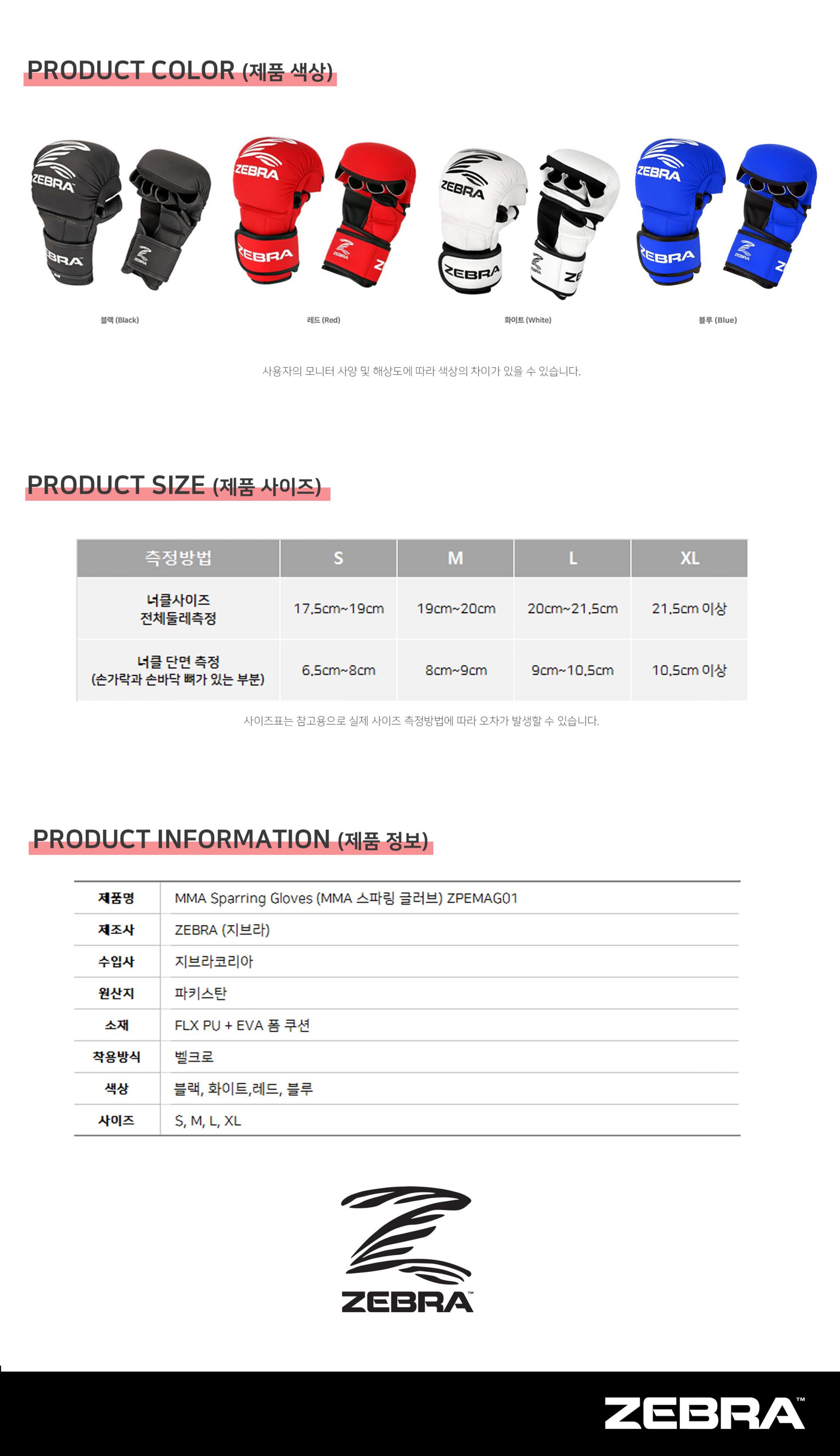 [리퍼브제품] 지브라 MMA 글러브 - [ZPEMAG01] ZEBRA MMA Sparring Gloves /권투 킥복싱 무에타이 MMA 종합격투기