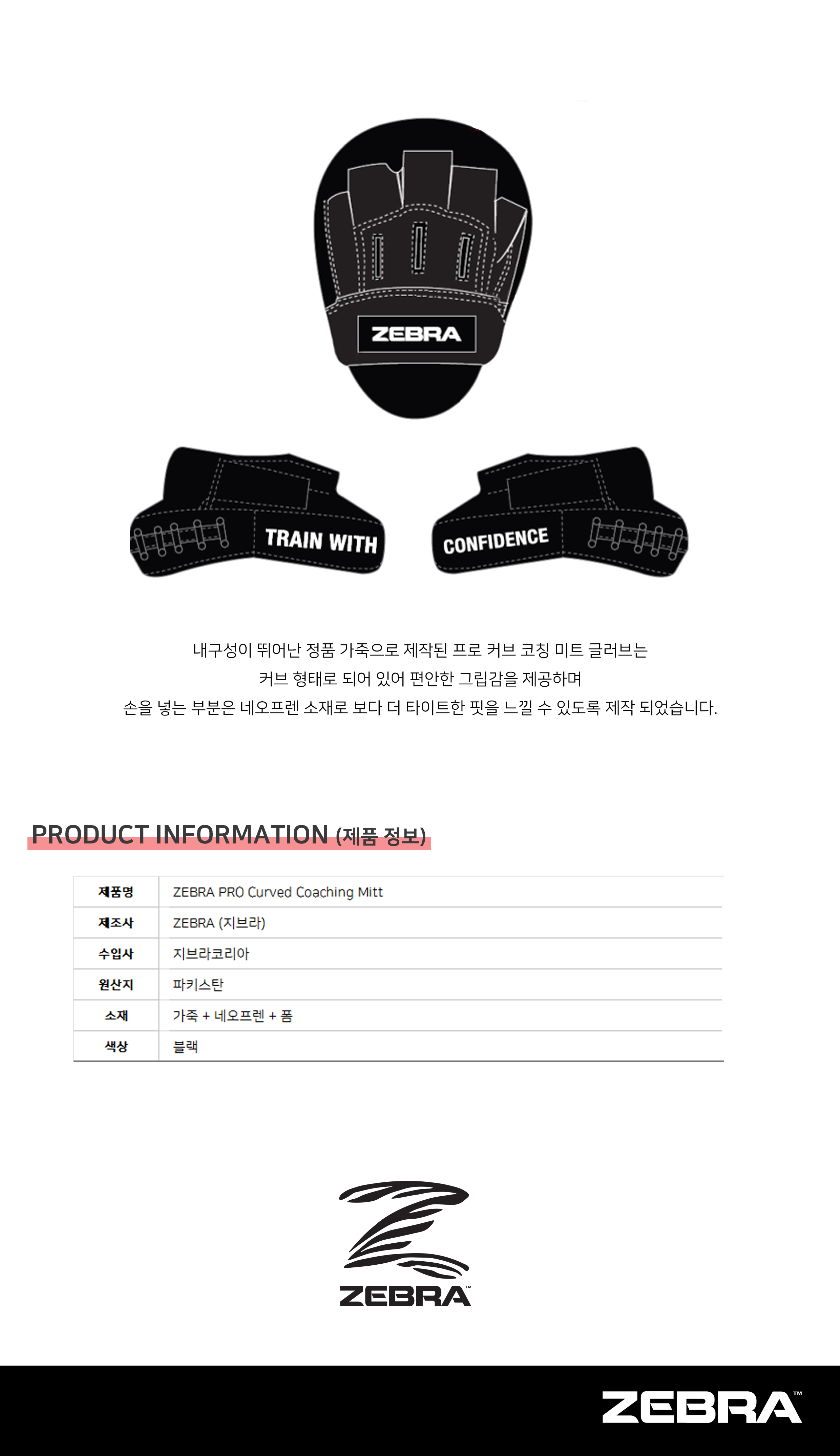 지브라 프로 코칭 미트 - [ZPRCM02] ZEBRA PRO Curved Coaching Mitt /권투 킥복싱 무에타이 MMA 종합격투기